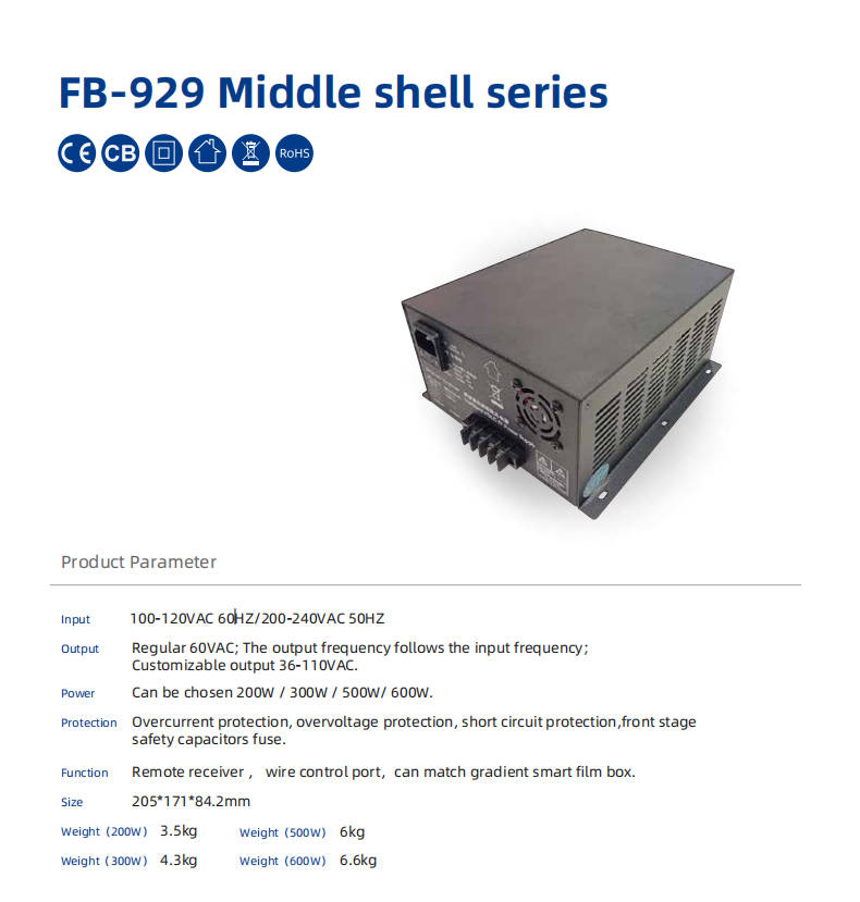 FB-929 Middle Shell Series 600W Transformer for Smart Film/Glass Within 75 Sqm
